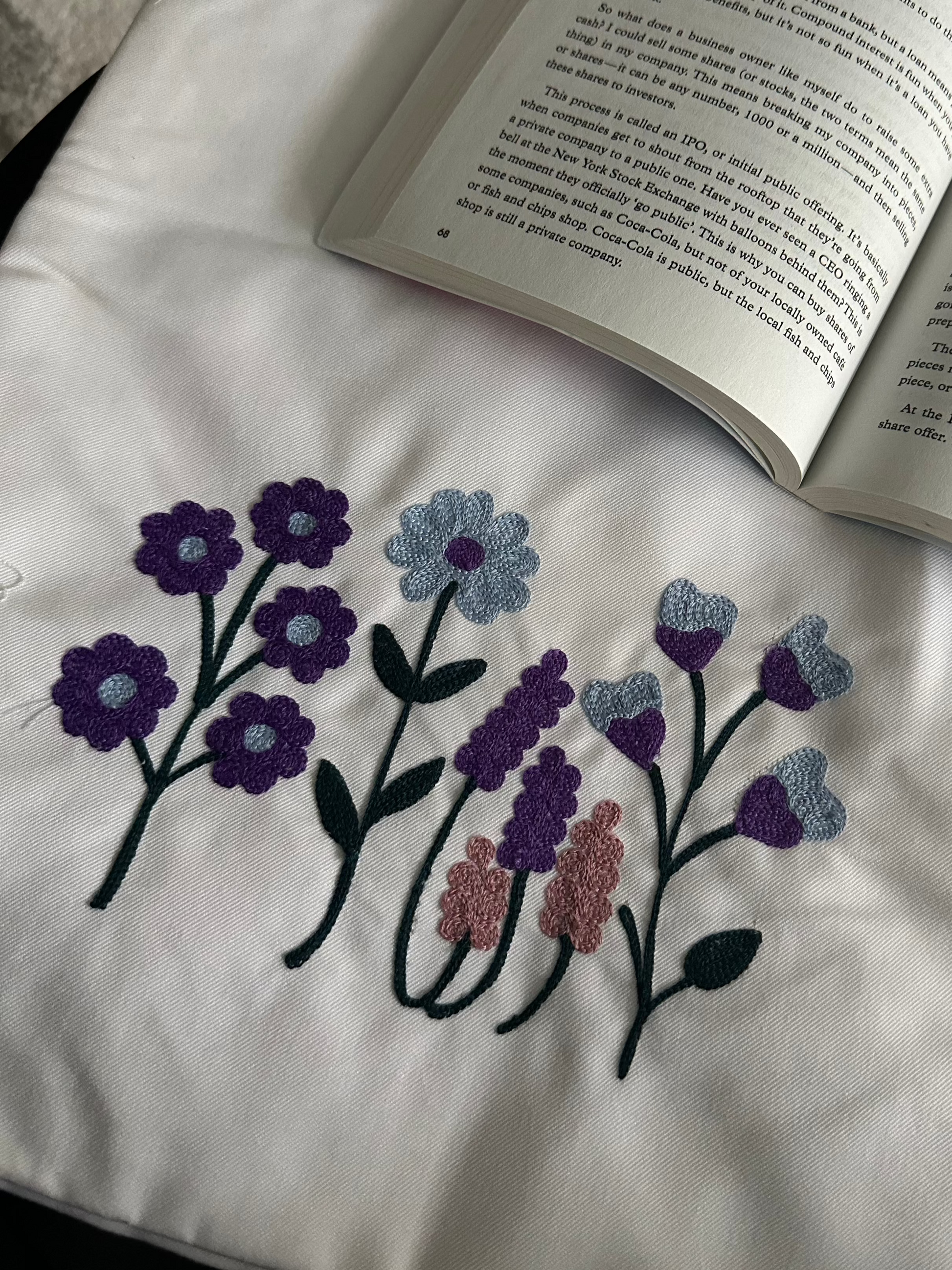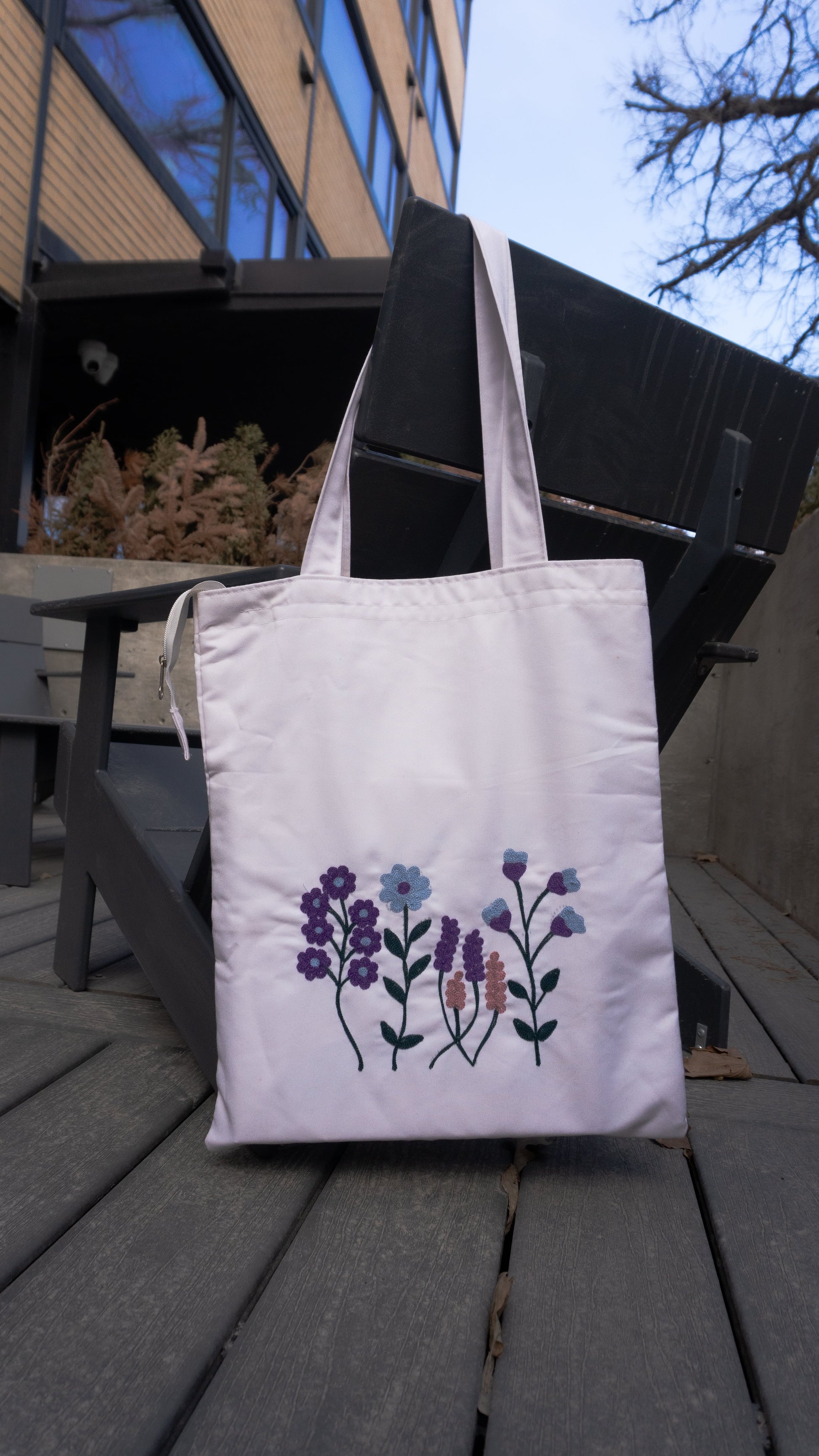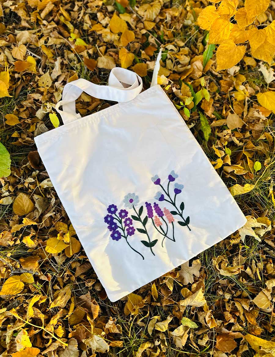 The Nutan tote bag, inspired by timeless love and new beginnings. Hand-embroidered with floral elegance, it's a heartfelt tribute to cherished memories.
